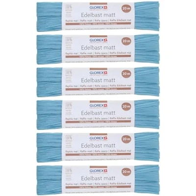GLOREX 6 9400 507K Raffia Edelbast, Bundles Each 20 m Matte Raffia, Light Blue for Crafts, Decoration or Arrangements, Bouquets and Other Floristry Works