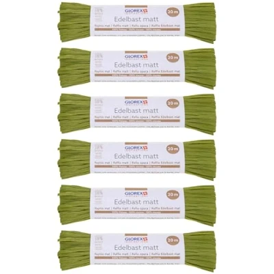 GLOREX 6 9400 510K Raffia Edelbast, Bundles Each 20 m Matte Raffia, Olive for Crafts, Decoration or Arrangements, Bouquets and Other Floristry Works