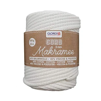 Circular knitted textile yarn 5 mm Made from 60% cotton, 40% viscose, polyester Ideal for macrame, crochet, knitting and designing trendy home and fashion accessories Colour: woven cream 500g ball is 85m