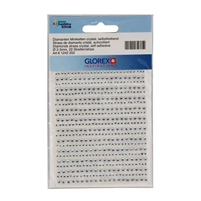 Glorex P & D Self Adhesive Mini Chain Diamonds Crystal 2/3 mm 22 for Strip, Plastic, silver, 14.5 x 8.6 0.2 cm
