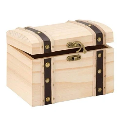 GLOREX Wooden Treasure Chest, Natural, 17 x 12.5 12 cm