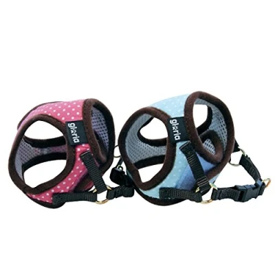 Adjustable padded harness with polka dot design Comfortable and durable Mesh lining for better ventilation They have two locks, one of velcro and a clip, for more security Small dogs