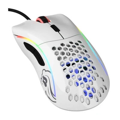 Glorious Gaming Model D Wired Mouse 68g Superlight Honeycomb Design, RGB, Ergonomic, Pixart 3360 Sensor, Omron Switches, PTFE Feet, 6 Buttons Glossy White