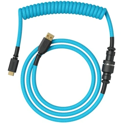 Glorious Gaming Premium Coiled Keyboard Cable Gold Plated USB A (PC) to C (Keyboard), Tangle Resistant, Double Braided Sleeving for Peak Durability, 5 Pin Aviator Mid Connection Electirc Blue