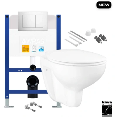 Complete Wall-Hung Set: Includes rimless ceramic toilet pan, soft-close seat, low-height concealed cistern frame, and chrome flush plate. Durable Premium Build: Constructed from high-grade ceramic, steel, and engineered plastics for long-term reliability. Self-Supporting Frame: Robust, powder-coated steel frame ensures stability and easy installation. Flexible Installation: Suitable for both solid and stud walls, perfect for compact or awkward spaces. Contemporary Chrome Finish: Stylish front-actuation flush plate complements any modern bathroom. Streamlined Appearance: Concealed fixings and covers deliver a clean, minimalist aesthetic. Low-Height Design: Ideal for spaces under sloped ceilings or windows thanks to its 0.80 m frame. WRAS & KIWA Certified: Fully approved for UK water safety and compliance, ensuring total peace of mind., Manufacturer: FNX Bathrooms
