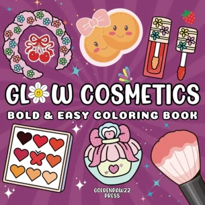 Glow Cosmetics: Big and Bold Coloring Book for Kids Adults, Simple Easy Designs Featuring Cosmetic Items, Makeup Skincare Products