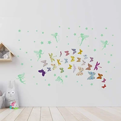 Glow in The Dark, Fairy, Floral Butterfly, Wall Décor, Nursery, Babyroom, Kids, Beautiful, Modern, Children Stickers, Colourful,Pattern, Woodland, Adventure