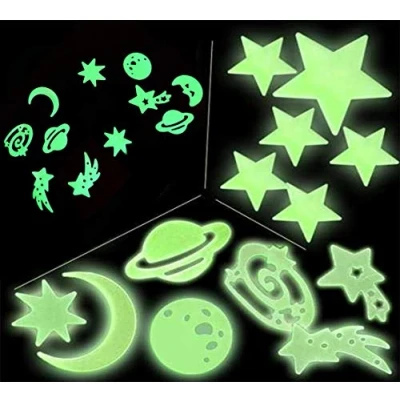 Glow in The Dark Planets and Stars, Florescent Wall Decals, Decor Stickers for Baby Kids Bedroom Decoration