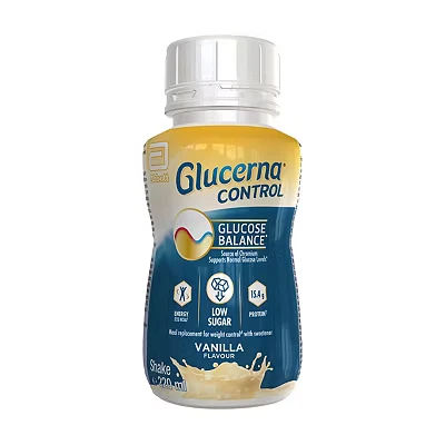 Glucerna Control is SCIENTIFICALLY formulated[7] to support with MAINTENANCE of normal blood sugar levels[1], weight loss and weight maintenance[2]. With CHROMIUM that contributes to maintenance of normal blood sugar levels[1], our ready-to-drink meal replacement empowers you to make better nutrition choices. LOW glycaemic index (GI)[4]. Our delicious[6] VANILLA flavour meal replacement shake contains slowly digestible carbohydrates including corn fibre and sucromalt. Also available in coffee flavour. One serving contains 223 CALORIES[3] and is packed with 27 vitamins and minerals. Use as a part of your healthy meal plan – as a MEAL REPLACEMENT for 1 to 2 meals daily[2] or an alternative snack option, in the comfort of your home or ON-THE-GO. HIGH PROTEIN [5]. 15.4g of protein per serving. HIGH FIBRE and LOW SUGAR. Suitable for VEGETARIANS, gluten free. With SWEETENER. Brought to you by Abbott, a LEADER in nutrition science, research, & development.