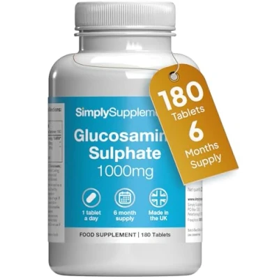 HIGH-STRENGTH 1000MG GLUCOSAMINE SULPHATE 2KCL: Each tablet contains a potent 1000mg dose of glucosamine sulphate 2KCl, providing a powerful daily supplement to support an active lifestyle. CONVENIENT ONE-A-DAY TABLETS: Just one fast-release, coated tablet per day provides your full daily dose. With 180 tablets, you get a complete 6-month supply from a single bottle. SUSTAINABLY MARINE-SOURCED INGREDIENTS: Our glucosamine is derived from premium marine sources, ensuring purity, consistency, and quality in every tablet. MANUFACTURED TO GMP STANDARDS: Produced in UK facilities under strict GMP regulations and third-party tested to guarantee safety, reliability, and high quality. TRUSTED EXPERTISE FOR DAILY SUPPORT: Backed by over 20 years of experience in supplements, Simply Supplements delivers premium, science-informed formulations for your daily routine.