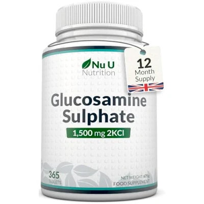 MEGA STRENGTH - Each tablet provides 1500mg of glucosamine sulphate, offering a 50% stronger Glucosamine supplement than the strength offered by many other supplements and in just a single tablet. This makes it is easy for you to get your recommended dosage. 1 YEAR FULL SUPPLY - We offer incredible value for money. Our 365 tablet pack gives you a full twelve-month supply. No need to remember to reorder every month with our 52 weeks’ supply. 100% OF PURE GLUCOSAMINE – Our high strength tablets deliver a full 1500mg of premium glucosamine sulfate. Suitable for men and women and perfect for active lifestyles — whether you’re running errands, going to the gym or enjoying weekend adventures! GLUTEN, WHEAT, DAIRY & GMO FREE - Our Glucosamine Sulphate tablets are GMO free and FREE from milk, lactose, gluten and wheat. They are also free of pesticides, fungicides, artificial fertilisers or other pollutants. THE NU U NUTRITION STORY - TRUSTED SUPPLIER OF NUTRITIONAL SUPPLEMENTS - Starting as a family business in 2014, we’ve expanded to offer a diverse range of high-quality supplements designed to support different lifestyles. Our mission is to make wellness simple, with premium ingredients that cater to your daily nutritional needs—whether for general health or targeted goals.