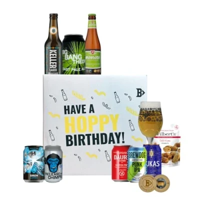 🍻 Celebrate a special occasion with our Gluten Free Beer Birthday Gift Set, a premium collection featuring top breweries: BrewDog, Thornbridge, Siren, Estrella, Nene Valley, Greens, and Brightside. This exceptional gift set is the perfect choice for beer lovers who enjoy gluten-free options without compromising on taste. 🍻 This Box Contains: Thornbridge AMPM 330ml Bottle, Brewdog AF Punk 330ml Can, Siren Lumina 330ml Can, Mongozo Pilsner 330ml Bottle 🍻 This Box Contains: Estrella Daura Gluten Free 330ml Can, Nene Valley Release the Chimps 330ml Can, GREEN's Ale 330ml Bottle, Brightside Kellerbier 330ml Bottle! 🍻 Not only that you will get an excellent gluten free snack from Mr Filberts along with a Beerhunter branded glass perfect for drinking your beer from & a bottle opener. 🍻 Make their birthday hoppy with our Gluten-Free Beer Hoppy Birthday Gift Box! Packed with flavourful craft brews free from gluten, it's the ideal present for beer enthusiasts with dietary restrictions. Show you care with a thoughtful, tasty gift that ensures they can enjoy their special day to the fullest! 🍻 Whether you're shopping for a beer aficionado with dietary preferences or looking for a unique birthday present, our Gluten Free Beer Birthday Gift Set is sure to impress. Order now and give the gift of great taste! 🍻 This Gluten-Free Beer Hoppy Birthday Gift Box is packaged safely and securely in a Beerhunter branded box ready for delivery.