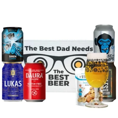 🍺 Celebrate the Best Dad with this premium Gluten Free Craft Beer Gift Pack, featuring five top-quality gluten-free brews plus a branded craft beer glass — perfect for birthdays, Father’s Day or gifting any beer-loving dad. 🌾 Includes gluten-free favourites: Lukas, Daura Damm, Siren Lumina, Release the Chimps and Brightside Hells Lager, offering crisp lagers, juicy pale ales and refreshing session beers in one exciting mix. 🥃 The included branded craft beer glass enhances aroma, carbonation and flavour, giving Dad a proper pub-quality pour whether he’s enjoying a crisp lager or a hop-forward gluten-free pale ale. 🎁 Ideal for gluten-free drinkers, this curated selection delivers variety and flavour without compromise — offering citrus notes, tropical hops, smooth malt and clean, refreshing lager character. 🎉 Presented in a bold Best Dad gift box, this gluten-free beer hamper is ideal for birthdays, Father’s Day, Christmas, thank-you gifts or surprising Dad “just because” with something unique and thoughtful.