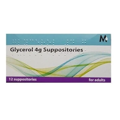 Ingrediants : NoActive Ingredients (per suppository): Glycerol BP 2.8g Also contains: Gelatine and Purified Water Ingrediants : NoActive Ingredients (per suppository): Glycerol BP 2.8g Also contains: Gelatine and Purified Water Glycerol Suppositories (adult sized) x 12