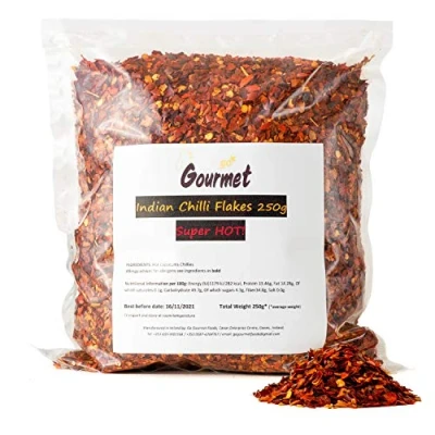 ✅ SENSATIONAL SPICY FLAVOUR: These pungent Indian chilli flakes are HOT and add spicy flavour and aroma to sauces, curries, chilli con carne and more ✅ SAVE TIME IN THE KITCHEN: Dry chillies already cut and crushed to save you time from cutting ingredients for a meal. Just grab, sprinkle and go ✅ RESTAURANT QUALITY: High-quality red capsicum chilli peppers crushed for ease-of-use and an authentic spicy aroma that adds heat to any dish ✅ HEALTHY: Dried chillies are rich in vitamin A which helps strengthen your immune system. Research suggests they can help boost metabolism too! ✅ VEGAN AND FAT-FREE: Just fresh chillies, dried and crushed into flakes. No additives or preservatives. Vegan and packaged right here in the UK
