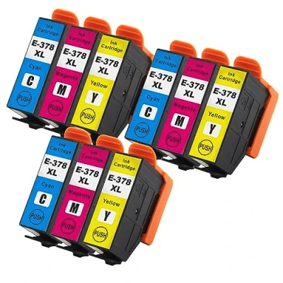Vibrant Colours: Includes Cyan, Magenta & Yellow ink cartridges. Colour Set: Pack includes 9 cartridges to replace E-378XLC, E-378XLM, E-378XLY Generous Capacity: Each cartridge contains 10.3ml of ink, ensuring long-lasting performance. Printer Compatibility: Designed for use with Epson Expression Photo XP-15000, XP-8500, XP-8505, XP-8600, XP-8605 printers. Superior Quality & Easy to Install: Professional-grade printing results at a fraction of the cost of original cartridges.