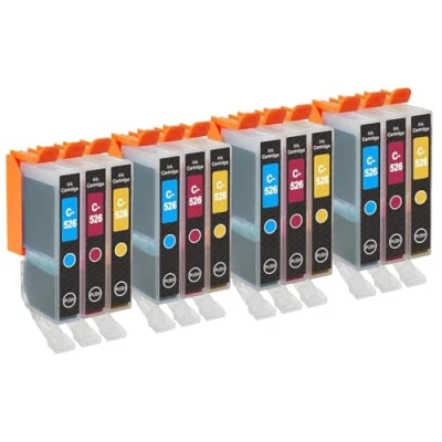 Go Inks 4 C/M/Y Set of 3 Ink Cartridges to replce CLI 526 Compatible/non OEM for PIXMA Printers (12 Pack)