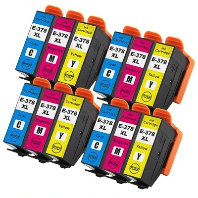 Vibrant Colours: Includes Cyan, Magenta & Yellow ink cartridges. Colour Set: Pack includes 12 cartridges to replace E-378XLC, E-378XLM, E-378XLY Generous Capacity: Each cartridge contains 10.3ml of ink, ensuring long-lasting performance. Printer Compatibility: Designed for use with Epson Expression Photo XP-15000, XP-8500, XP-8505, XP-8600, XP-8605 printers. Superior Quality & Easy to Install: Professional-grade printing results at a fraction of the cost of original cartridges.