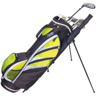 comfortable padded single strap Full length clothing pocket 3 accessories pockets Mesh side pockets 5 way full length dividers Towel clip Reinforced stand with rubber 'shoes' Umbrella holder Colour black/silver/yellow
