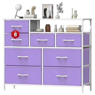 GoaHi Chest of Drawers with 8 Drawers,Bedroom Drawers, Fabric Dresser Wood Top,Drawer storage unit for Bedroom, Living room,Purple
