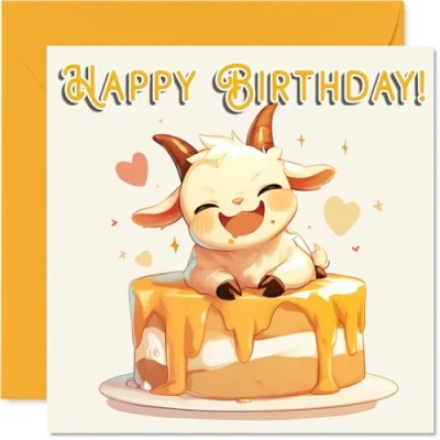 Goat Birthday Cards Animal Cake Happy Card for Son Daughter Brother Sister Grandson Granddaughter Niece Nephew Cousin, 145mm Bday Greeting