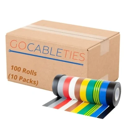 Gocableties 100 Rolls (10 Packs) Multi Pack of PVC Electrical Insulation Tape, 20m x 19mm, Premium colour Mixed