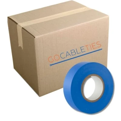 INDUSTRY STANDARD ELECTRICAL TAPE: This box of 50 rolls of blue electrical insulation tape adheres to the BS EN 60454-2 industry standard making it ideal for commercial wiring projects and DIY tasks. SIZE: 19mm x 20m (0.15mm Thick) MOISTURE AND UV RESISTANT: Manufactured from high-grade PVC material which offers excellent thermal properties and protection against abrasion. This durable electrical tape is able to withstand temperatures from -18°C to +105°C and is suitable for indoor and outdoor use. STRONG ADHESION: Gocableties Electrical Tape is coated in a long-lasting rubber based adhesive which bonds instantly to a wide range of materials. MULTI-PURPOSE: A versatile toolbox essential, electrical insulation tape is a great solution for protecting, insulating and colour-coding wires and components.