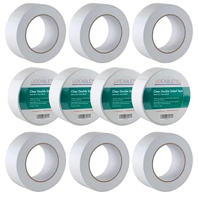 MULTI-PURPOSE DOUBLE SIDED TAPE: This package contains 10 rolls of easy peel double sided sticky tape. Each roll measures 50mm (2”) x 33m. STRONG ADHESIVE: Both sides of the tape are coated in a strong, long-lasting adhesive to securely stick and fix two items together such as card or plastic. DISCREET APPEARANCE: Clear and thin, this tape leaves a nice clean looking finish without the glue mess! EASY TO USE: Gocableties Double Sided Tape can be cut with scissors or easily torn by hand. Simply remove the white release paper upon application. HUNDREDS OF APPLICATIONS: Perfect for crafting, scrapbooking, photo mounting and hanging lightweight decorations. This tape is a household, school and artist essential!