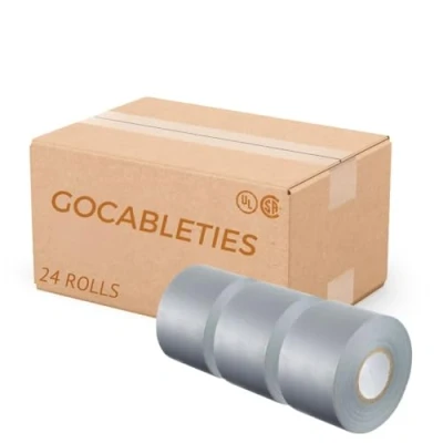 Gocableties Grey Wide Electrical Tape, 50mm x 33m, 2" Strong Self Adhesive PVC Insulation Tape for Insulating, Repairing and Protecting Wires, 24 Rolls