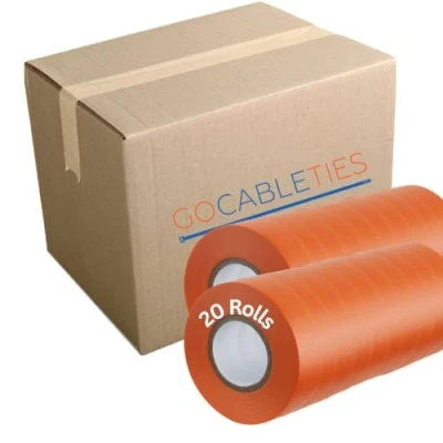 INDUSTRY STANDARD ELECTRICAL TAPE: This 20 roll pack of orange electrical insulation tape adheres to the BS EN 60454-2 industry standard making it ideal for commercial wiring projects and DIY tasks. SIZE: 19mm x 20m (0.15mm Thick) MOISTURE AND UV RESISTANT: Manufactured from high-grade PVC material which offers excellent thermal properties and protection against abrasion. This durable electrical tape is able to withstand temperatures from -18°C to +105°C and is suitable for indoor and outdoor use. STRONG ADHESION: Gocableties Electrical Tape is coated in a long-lasting rubber based adhesive which bonds instantly to a wide range of materials. MULTI-PURPOSE: A versatile toolbox essential, electrical insulation tape is a great solution for protecting, insulating and colour-coding wires and components.