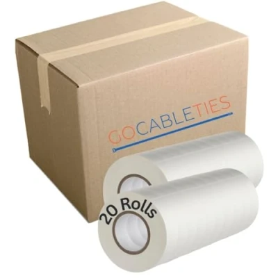 INDUSTRY STANDARD ELECTRICAL TAPE: This 20 roll pack of white electrical insulation tape adheres to the BS EN 60454-2 industry standard making it ideal for commercial wiring projects and DIY tasks. SIZE: 19mm x 20m (0.15mm Thick) MOISTURE AND UV RESISTANT: Manufactured from high-grade PVC material which offers excellent thermal properties and protection against abrasion. This durable electrical tape is able to withstand temperatures from -18°C to +105°C and is suitable for indoor and outdoor use. STRONG ADHESION: Gocableties Electrical Tape is coated in a long-lasting rubber based adhesive which bonds instantly to a wide range of materials. MULTI-PURPOSE: A versatile toolbox essential, electrical insulation tape is a great solution for protecting, insulating and colour-coding wires and components.