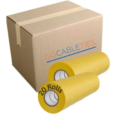 INDUSTRY STANDARD ELECTRICAL TAPE: This 20 roll pack of yellow electrical insulation tape adheres to the BS EN 60454-2 industry standard making it ideal for commercial wiring projects and DIY tasks. SIZE: 19mm x 20m (0.15mm Thick) MOISTURE AND UV RESISTANT: Manufactured from high-grade PVC material which offers excellent thermal properties and protection against abrasion. This durable electrical tape is able to withstand temperatures from -18°C to +105°C and is suitable for indoor and outdoor use. STRONG ADHESION: Gocableties Electrical Tape is coated in a long-lasting rubber based adhesive which bonds instantly to a wide range of materials. MULTI-PURPOSE: A versatile toolbox essential, electrical insulation tape is a great solution for protecting, insulating and colour-coding wires and components.