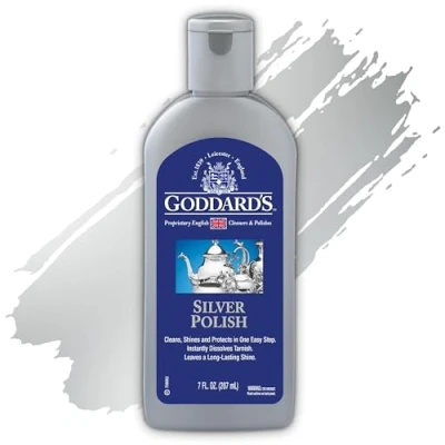 Instant Tarnish Removal – Quickly dissolves tarnish to restore silver's original brilliance in seconds Cleans, Shines & Protects – All-in-one formula polishes silver and leaves a protective layer to prevent future tarnish Perfect for All Silver Items – Safely cleans jewellery, cutlery, tea sets, trays, antiques, candlesticks, and more Long-Lasting Shine – Delivers a durable, mirror-like finish that keeps silver gleaming for longer Easy to Use – Simply apply with a soft cloth, gently rub, and buff to reveal a sparkling result 🇬🇧 Trusted British Quality – Made with Goddard’s proprietary English formula, trusted since 1839