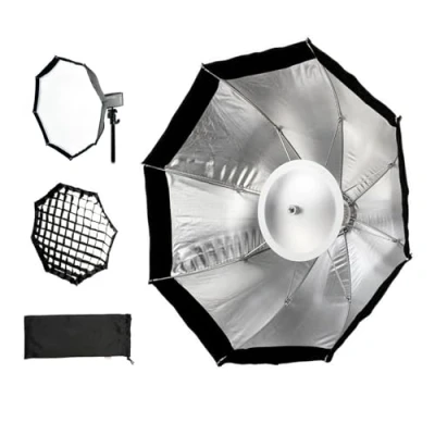 DUAL FUNCTIONALITY: The AD-S7 serves as both a softbox and a beauty dish. Its included reflector enhances light distribution across the reflective silver interior for versatile lighting options. COMPACT DESIGN: The entire unit folds down to just a quarter of its original size and fits neatly into a nylon sleeve, utilizing an umbrella-style mechanism for quick setup. UMBRELLA OPENING SYSTEM: The innovative umbrella-style opening system allows the AD-S7 to be fully assembled in seconds, with no need for disassembly between uses. COMPLETE ACCESSORIES: Included are a 5x5mm fabric honeycomb grid, inner and outer diffusers, and a reflector dish for precise control over light shaping. IDEAL SIZE: Measuring 48cm diagonally (just under 19 inches), the AD-S7 strikes the perfect balance between portability and surface area for optimal light diffusion.