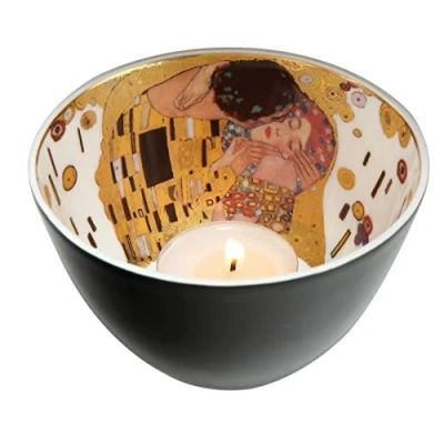 Gentle candlelight brings the artist motifs to the fore and creates a romantic living environment. Goebel Tea Light Holder Gustav Klimt The Kiss The kiss is considered the most important work of Gustav Klimt - a world famous icon of love. Made from high quality porcelain Also ideal as a gift