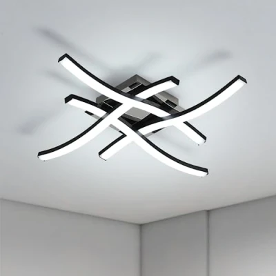 [Ceiling Lamp Specification]: This ceiling lamp adopts built-in LED chips as light source,presenting cold white light 6500K. Power: 24W, Voltage: 220V. Overall lamp measures 46 cm * 46 cm * 7 cm, single light tube length 36 cm. Gross weight 850g. [Durable Material]: This LED ceiling lamp features a sturdy and durable metal base and acrylic lampshade. The painted metal base is resistant to deformation and corrosion. The acrylic lamp shade provides even lighting transmission. [Elegant Design]: This modern ceiling lamp is consisted of 4 wave lighting tubes and a square metal base. The 4 tubes crosses and creates a dynamic visual effect which will add more elegance to your rooms. [Wide Application]: The chandelier blends perfectly with many decoration styles and fits for various rooms. This ceiling lamp can add the cosy atmosphere to the living room, lounge, kitchen, bedroom and office. [Easy Assembly]: This ceiling lamp comes with a clear manual and all mounting accessories in the package. Please note: Turn off the switch before connecting the ceiling light to the circuit to prevent damage to the light source.