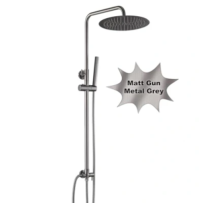 Görbach Shower Column Without Mixer, 304 Stainless Steel Hydromassage Adjustable Riser Rail Set, Rain Set with Head and Hand Shower, D30 cm Grey Cane