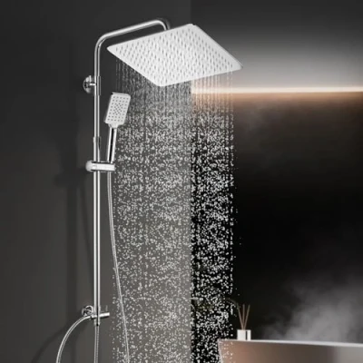 Please note: the shower set does not include a thermostatic tap/shower tap. XXL rain showerhead: 30 x 30 cm mirror shower head made of stainless steel with easy-care, anti-limescale nozzles, 2 mm ultra-slim figure. 【Plastic Hand Shower】High quality shower head with 3 spray types: rain, powerful massage, soft massage. 【Shower Rail】Height adjustable stainless steel shower rail, shiny chrome finish for scratch resistance and easy cleaning. When adjusting the height, simply push or pull the top bar and secure it. The upper diameter of the rod is 20mm, the bottom diameter of the rod is 24mm. Pole height adjustable from 74 cm to 114 cm. The top rod can be rotated 360°, universally applicable for small spaces/rooms. 【Wall Mounting】The metal top wall bracket can be moved, can be used universally for existing drill holes with a minimum distance of 66cm to a maximum distance of 105cm. The two wall brackets are made of metal and are very sturdy, the wall bracket is attached each with a screw. 【Shower Hose】The hose is made of stainless steel and fits any G1/2'' connector without adapter, with a twist-free design, no matter how you twist, the hoses will not bend. Hose for the shower head with a length of 150 cm. Hose for shower fittings with a length of 80 cm. 【WATER HEATER AND LOW PRESSURE BOILER】Our shower system is suitable for instantaneous water heater and low pressure boiler. WARRANTY: The warranty does not apply to wear/deterioration of products due to use. 24/7 customer service., Weight: 8.6200744442 pounds, Manufacturer: Dylin