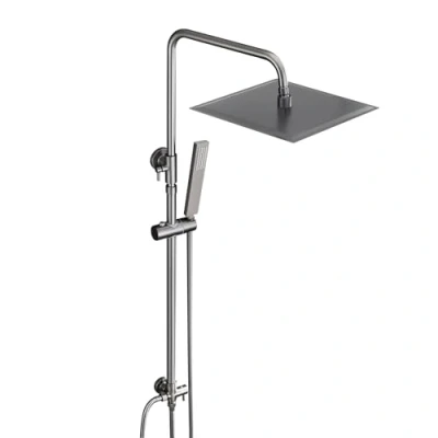 Görbach Stainless Steel Hydromassage Shower Column Without Tap, Rain System, Set with Adjustable Rod, Head 30 x cm Brushed Gungrey