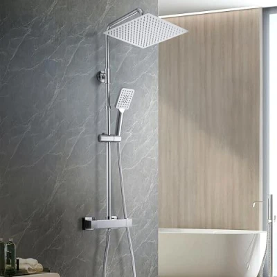 Görbach Thermostat Shower System with Mixer Tap Fixture, Stainless Steel Rod, Rain Head XXL 30 x cm, Chrome