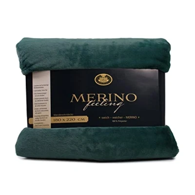 Cosy living ambience: Reversible blanket (180 x 220 cm) in Dark Green, Good for relaxing or as a decorative sofa throw Merino-Feeling: Cuddly, soft and cosy surface, Naturally warm due to high density of the pile (600 g/m²) Excellent protection against the cold, High-quality, particularly hard-wearing and resistant fibres Easy care: gentle wash cycle at 30°C, Suitable for tumble dryer (1 Item) Contents: 1x Gözze Reversible Blanket, Merino-Feeling, Dimensions: 180 x 220 cm, Colour: Dark Green, Material: 100% Polyester, Weight: 600 g/m², 40164-85-180220