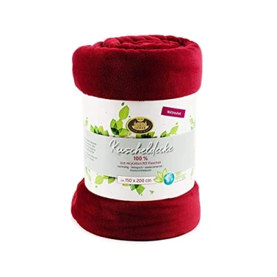 Sustainable, innovative and pamperingly soft: fluffy living and cuddly blanket (150 x 200 cm) in Bordeaux made from recycled raw materials, ideal for snuggling up or as a decorative sofa throw Cuddly, cuddly soft blanket, made from 100% recycled PET bottles, certified according to Global Recyceld Standard CU 845472 Naturally warm thanks to double-layer workmanship, first-class heat retention, skin-friendly thanks to high-quality polyester workmanship and high material density (450 g/m²) Easy care: washable at 30°C on a gentle cycle, suitable for tumble drying Box contents: 1x Gözze blanket and cuddly blanket, dimensions: 150 x 200 cm, colour: burgundy, material: 100% polyester microfibre made from 100% recycled polyester, 40143-33-150200