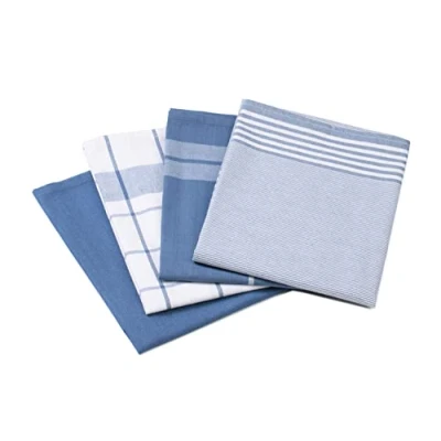 Gözze Set of 4 Tea Towels, 100% Jacquard Cotton, High Weight Material (200 g/m²), 50 x 70 cm Blue