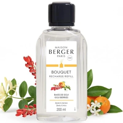 Vibrant Scent: Enjoy a burst of citrus notes, followed by a soft heart of goji berries and honeysuckle, and a comforting musky base with cashmere wood and amber Perfect Size: This 200ml refill bottle is ideal for keeping your aroma diffuser running for extended periods Elegant Design: Crafted from glass, this refill bottle adds a touch of sophistication to your space Easy to Use: Simply pour the refill into your aroma diffuser's water reservoir and turn it on to start scenting your interior Safety First: Highly flammable, keep away from heat and open flames, and store out of reach of children and pets