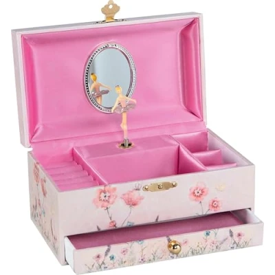 AmazonMusical Jewellery Box for Hair Clips, Headbands and Jewellery Spacious design with ring compartment Pink fabric lined Music box automatically plays the melody of "SwanLake" Perfect for any child's room, Manufacturer: Gollnest & Kiesel GmbH & Co. KG