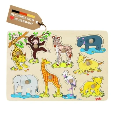 Lift out puzzle, african baby animals wood Bright and colourful very robust Great fun, Manufacturer: Goki