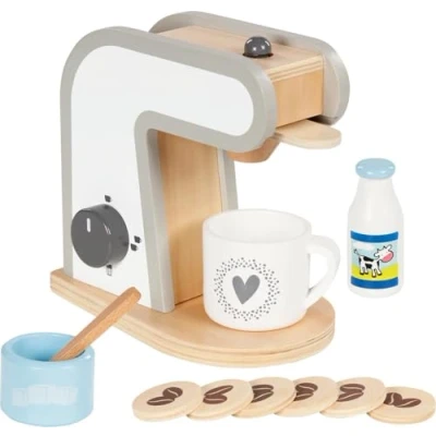 Complete 13-piece set: equipped with a detailed coffee machine, wooden pads, cup, sugar bowl and milk bottle for realistic fun. Recreate and learn social interactions through creative role games: perfect for cosy coffee parties with all game friends, promotes social skills and stimulates the imagination. SUSTAINABLE WOOD DESIGN: Durable, safe and environmentally friendly - Made from high quality wood for years of enjoyment. Child-friendly size: with the dimensions 17.5 x 10.5 x 16.5 cm, ideal for small hands, allows easy handling and safe play. Perfect extension for the play kitchen: complete your children's kitchen with other items from this product range: mixer, scale, toaster and pot set complete the gaming experience., Manufacturer: Gollnest & Kiesel GmbH & Co. KG