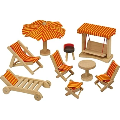 Dolls' house, garden furniture great role play great fun solid wood bright and colourful, Manufacturer: Goki