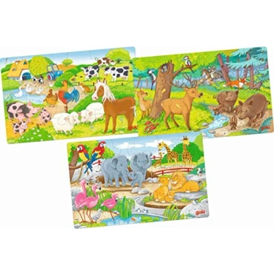 3 different animal puzzles, each with 24 pieces When puzzling, children practice age-appropriate patience, concentration and accurate looking Solid wood Item dimensions: 27.3 x 17.3 cm Colourful design, Manufacturer: Gollnest & Kiesel GmbH & Co. KG