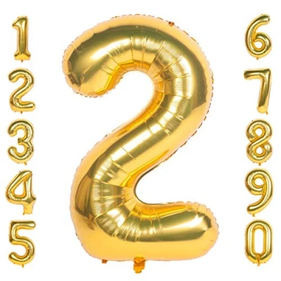 Gold 2 balloons 40 Inch Giant Helium Foil Number 0 to 9 Balloon Birthday Wedding Party Digital Decorations (Number 2)
